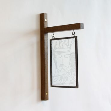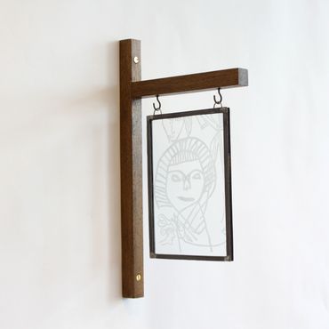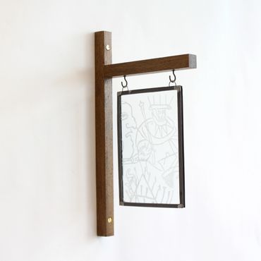 Engraving on Reclaimed Glass, Lead, Oak and Fixings