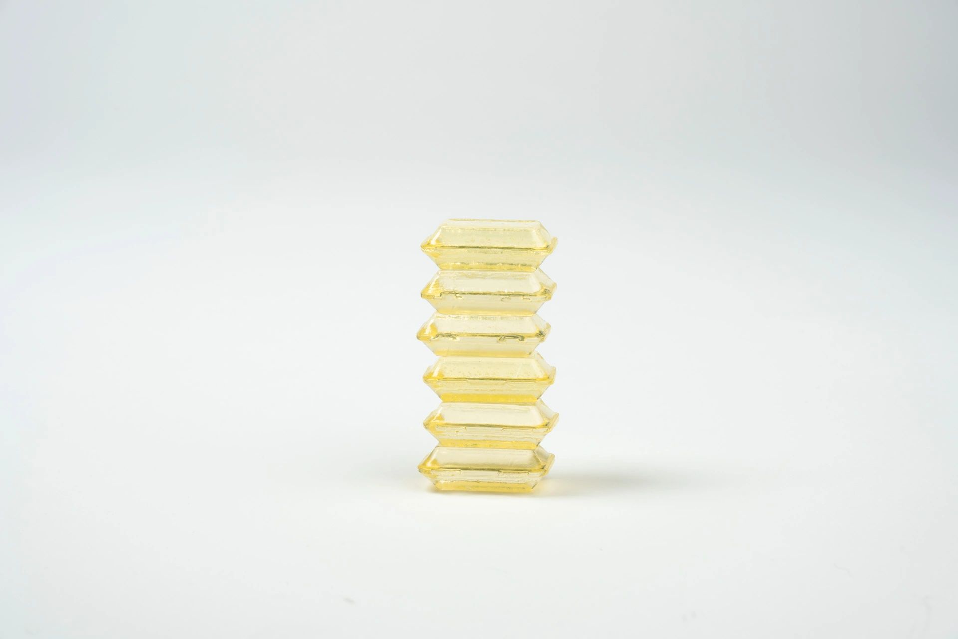 In this multiple, Jacob Talkowski's produces a micro edition of takeaway food containers, turning his signature installations - usually functioning as long walls, meandering forms and towers - into digit-sized playthings, made to be assembled and disassembled at will.