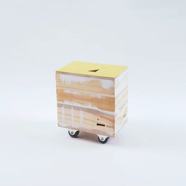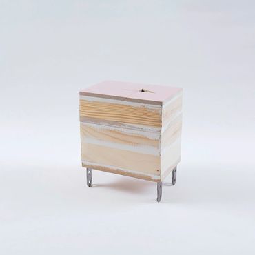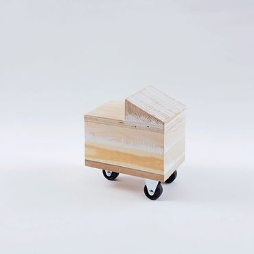 Molly Thomson's Untitled (Serviceable Objects) are a series of sculptural assemblages which use painting's materials, including wood, filler and acrylic paint, to show compression and objecthood. Where painting is often stretched to expand across a wall or surface, here Thomson describes the condensing of the work into a small space. A series of works which continue the artist's interest in painting's contingency or being in the world, the six interrelated but unique works each stretches upwards using door-springs, metal brackets, castors and plastic feet to stand and describe forms of movement or fixity.